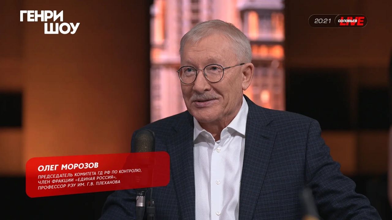 В эфире итоговой программы «Генри Шоу» — Олег Викторович Морозов, председатель комитета ГД РФ по контролю, член фракции «Единая Россия», профессор РЭУ им. Г.В. Плеханова. Смотрите в Telegram!