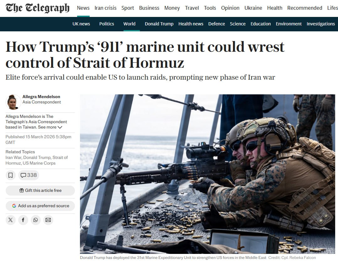 The Telegraph: США перебрасывают силы морской пехоты «911» к Ормузскому проливу