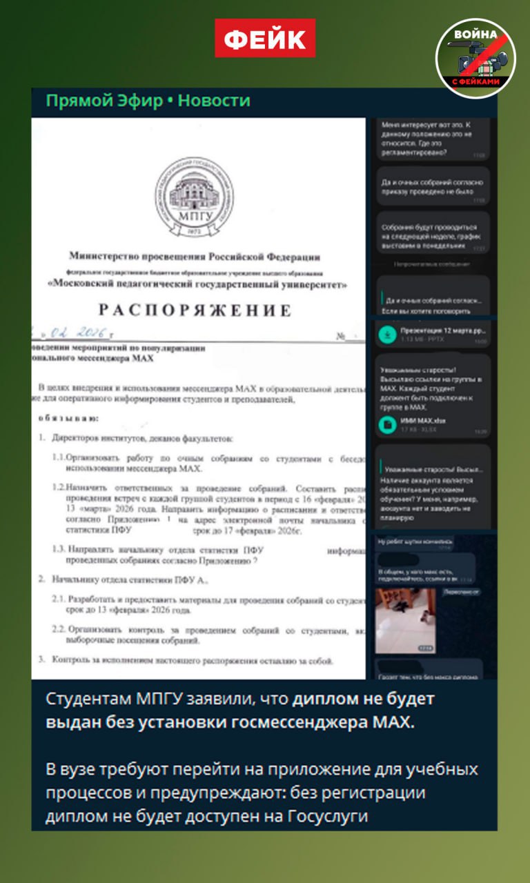 Фейк: Студентам Московского педагогического государственного университета не выдадут дипломы без регистрации в МАХ. Такой документ появился в Сети.
