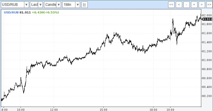 Внебиржевой курс доллара поднялся выше 82 рублей - впервые с октября.