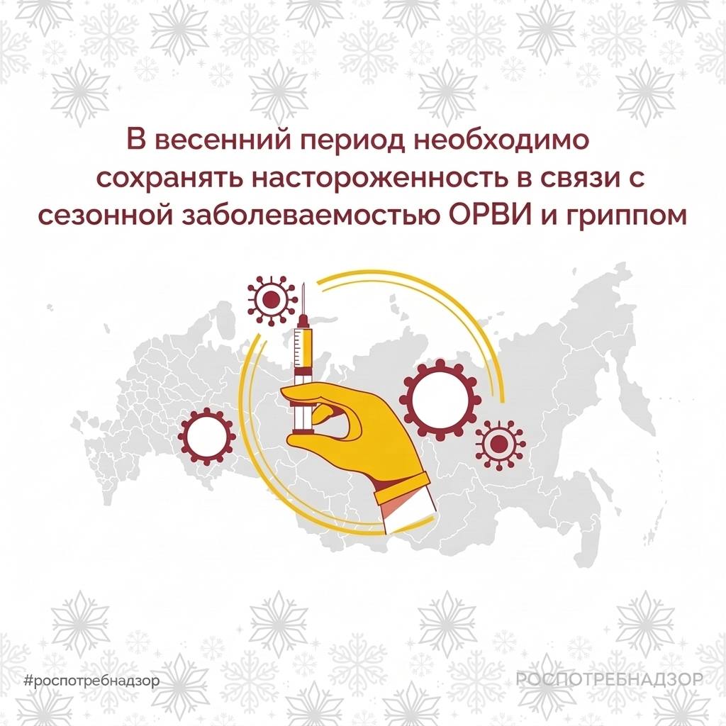 Несмотря на общее снижение заболеваемости ОРВИ и гриппом, в весенний период продолжается активная циркуляция респираторных вирусов. Роспотребнадзор информирует о необходимости соблюдать базовые меры профилактики:
