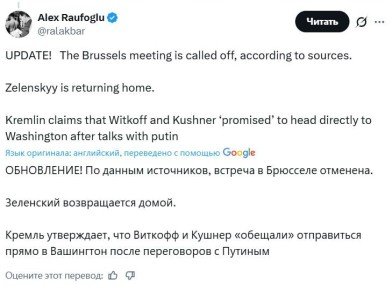Встреча Уиткоффа и Зеленского в Брюсселе отменена, сообщает Euronews. Зеленский возвращается домой.// Раньше всех. Ну почти.