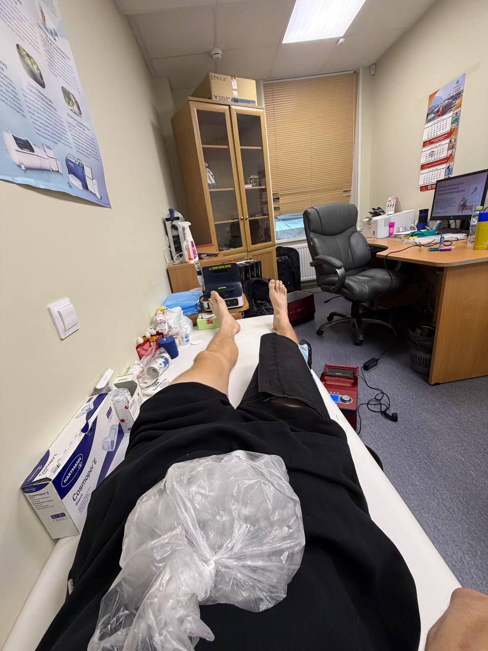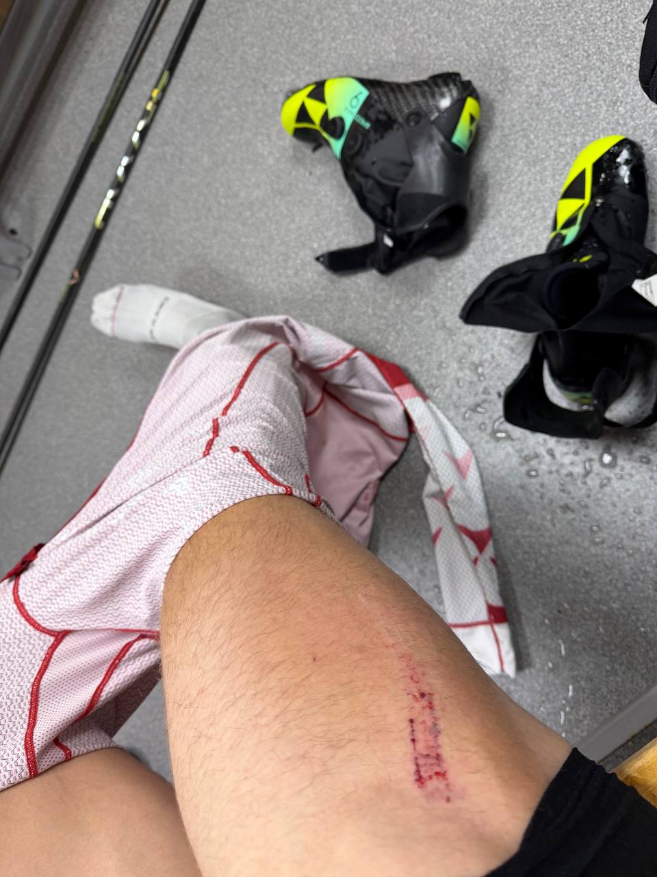 На фото — нога Александра Бакурова. Он заявил, что из-за травмы, возможно, не успеет восстановиться к следующему этапу Кубка России.