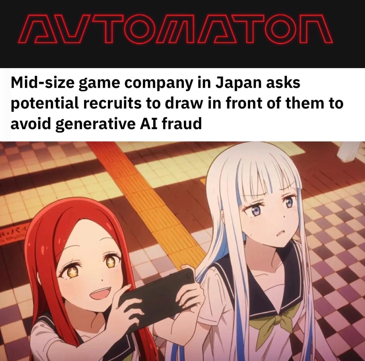 «Японская игровая студия просит кандидатов рисовать прямо на собеседовании, чтобы избежать мошенничества с генеративным ИИ»: Поколение-ChatCPT уже не умеет самостоятельно даже рисовать.