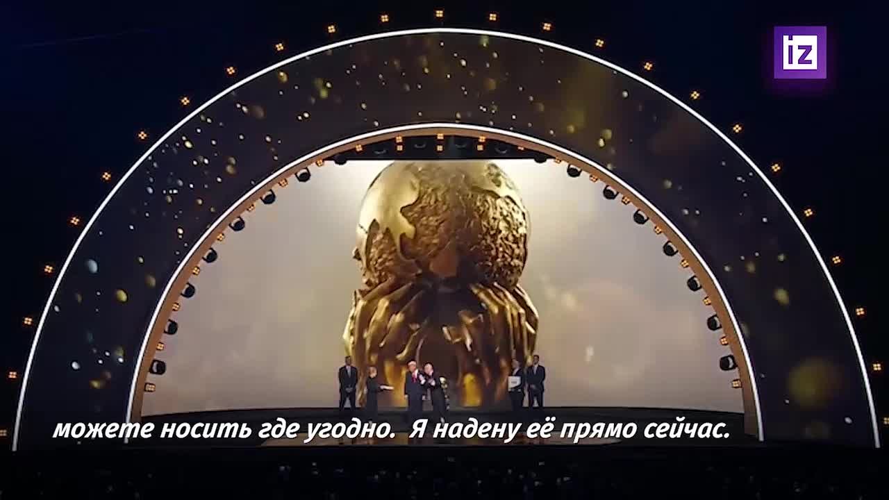 "Господин президент, это ваша награда, ваша премия мира. Здесь также красивая медаль, которую вы можете носить где угодно", — сказал президент Международной федерации футбола Джанни Инфантино.