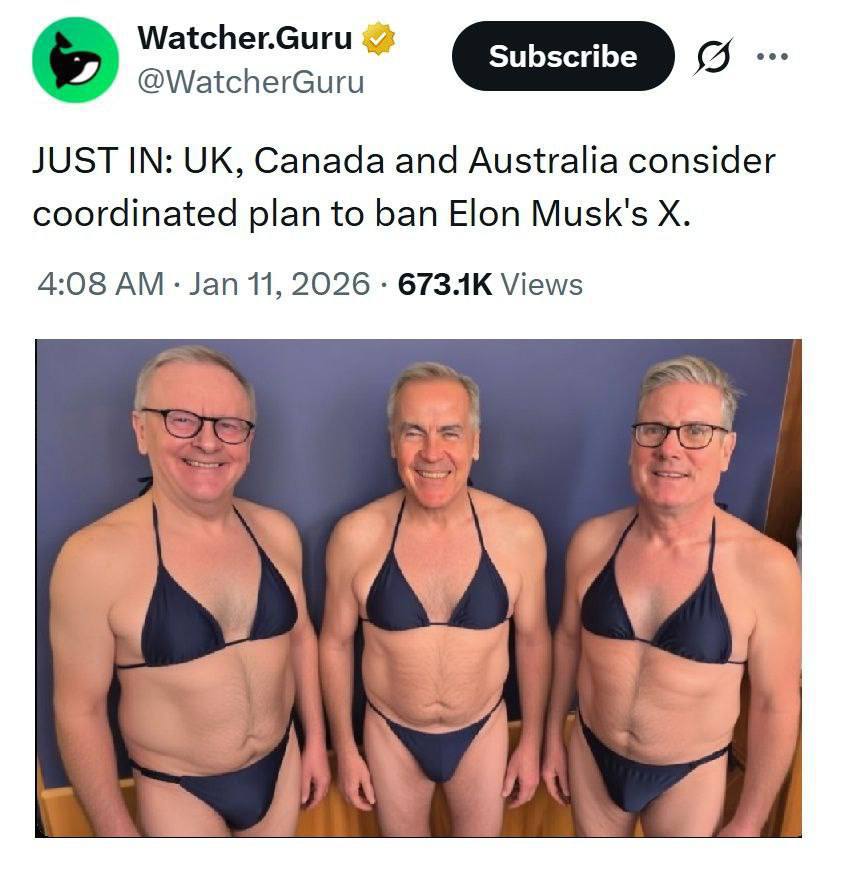 По данным британского канала GB News, канцелярия премьера Великобритании ведёт переговоры с Канадой и Австралией о «совместном трёхстороннем ответе» на ситуацию вокруг X и Grok.