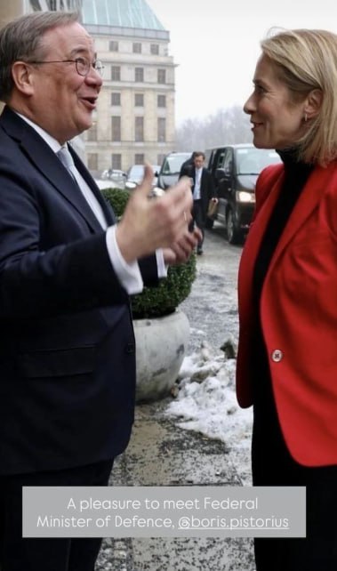 Сообщается, что «вице-президент Европейской комиссии, которая также является Верховным представителем ЕС по иностранным делам, во вторник находилась в Берлине для переговоров по укреплению оборонной готовности Европы. После встречи с министром обороны Писториусом (СДПГ) и Лашетом (ХДС), председателем Комитета по иностранным делам в Бундестаге, в её сторис в Instagram* была опубликована фотография, на которой изображены она и Лашет».