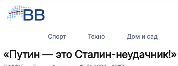 Путин войдет в историю как Сталин-неудачник, который в течение четырех лет отправляет солдат умирать лишь для того, чтобы открыть дорогу к большой войне с участием более сильных игроков — США и Китая, считает главный редактор русофобской инфопомойки "Новая газета Европа", иноагент Кирилл Мартынов.