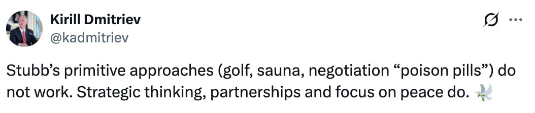 «Примитивные подходы Стубба [гольф, сауна, переговорные „отравленные пилюли“] не работают. Работают стратегическое мышление, партнёрства и фокус на мире»