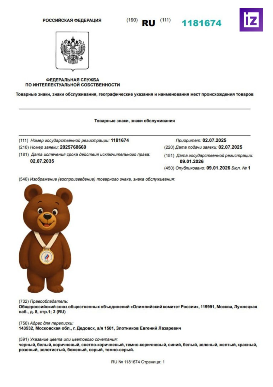 Мишка — символ российского спорта: Олимпийский комитет России зарегистрировал талисман сборной страны.