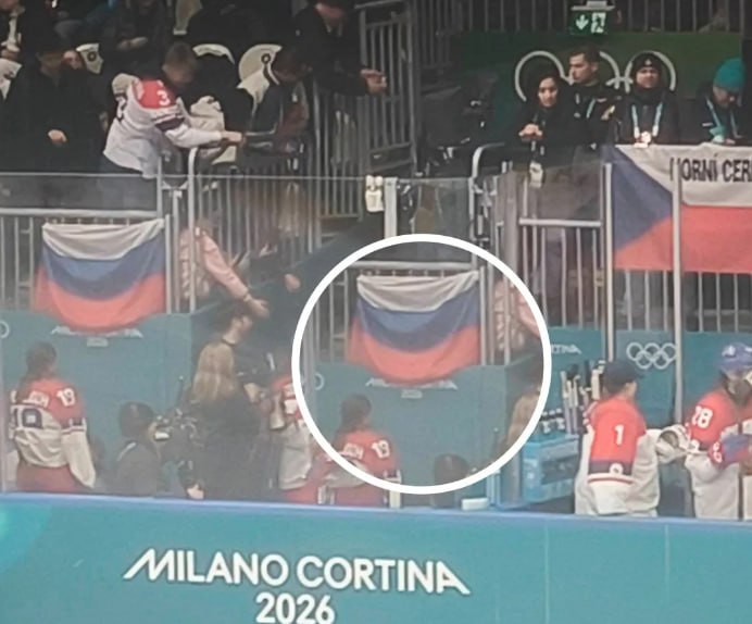 Российский флаг вывесили во время хоккейного матча на Олимпиаде.