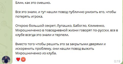 Теперь же прошло голосование, по его итогам выбрали нового капитана — Владислав Бабогло. В комментариях многие утверждают, что и он в обычной жизни использует русский язык. Футбольные фанаты пишут, чтобы руководство занялось игрой, а не выяснением того, кто на каком языке говорит.
