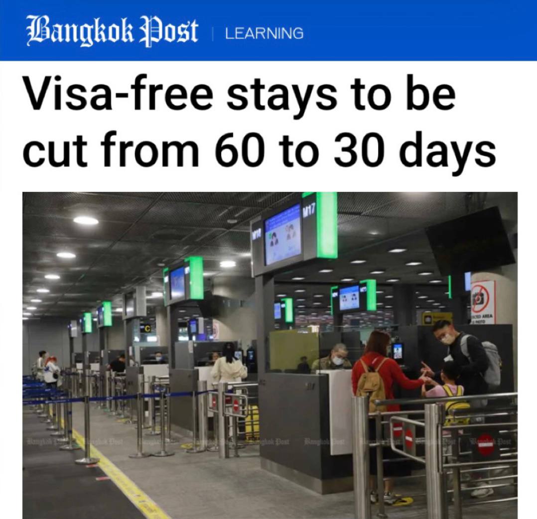 «Срок безвизового пребывания сократят с 60 до 30 дней»: Россияне смогут оставаться в Таиланде без визы только на месяц.