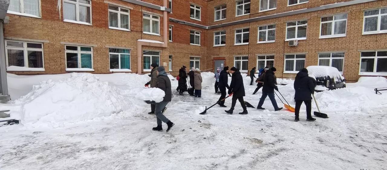 Расчистили пешеходные дорожки, обеспечивающие доступ пациентов и медицинского персонала к корпусам больницы, а также подъездные пути для оперативного прибытия скорой помощи и другого транспорта.