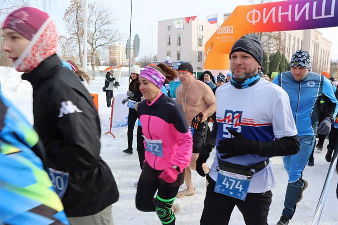 Спортсмены из 14 регионов России пробежали 6 км в Центральном парке в честь Дня защитника Отечества.