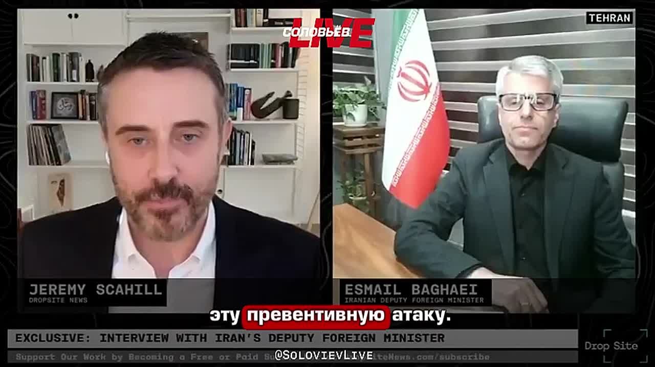 «Итак, то, что мы наблюдаем сейчас, это продолжение неспровоцированного, необоснованного акта агрессии. Во-первых, они утверждают, что Иран представлял непосредственную угрозу Соединенным Штатам. Какую угрозу Иран мог представлять для Соединенных Штатов? Мы что, пришли в Мексиканский залив, чтобы атаковать Лос-Анджелес и другие города США? Или они пришли за 6500 миль от иранских берегов, и они просто атакуют каждую часть Ирана? Они убивают наших граждан, муниципалитеты, школы, больницы, медицинские центры, спортивные клубы. Везде происходят бомбардировки и атаки ракетами со стороны израильской и американской военной машины. Я хочу спросить вас о том, вы намекали на это, но нарративы, выдвигаемые администрацией Трампа, они фактически противоречат друг другу. Как вы упомянули, госсекретарь Марко Рубио выступил и сказал, по сути, что США считали, что когда Израиль атаковал Иран, о чём они знали, что Израиль собирался атаковать Иран, Иран затем собирался нанести ответный удар в результате атаки Израиля на Иран. Поэтому Соединенным Штатам необходимо было превентивно атаковать Иран, потому что Иран собирался атаковать Израиль после того, как Израиль атаковал Иран. В Соединенных Штатах разразился большой скандал в СМИ из-за этого, потому что это, по сути, означает, что США ведут войну на том основании, что другая страна собиралась сделать что-то, что затем заставило бы Соединенные Штаты что-то сделать. Это была совершенно извращенная логика. А затем Трамп пытался это сгладить, когда он сидел рядом с канцлером Германии во вторник в Белом доме. И он сказал, нет, нет, нет, нет, на самом деле мы считали, что из-за того, что переговоры шли плохо, иранцы собирались первыми нанести удар по нам, и поэтому мы провели эту превентивную атаку. Ложь за ложью. И мне очень жаль, потому что мы, как иранцы, мы относимся к американской общественности, к американским гражданам, мы считаем их достаточно умными, чтобы распознать то, что делают их администрации и предлагают им. Они не должны верить этим лживым утверждениям. Я снова ссылаюсь на слова Биньямина Нетаньяху, который сказал, что решение атаковать Иран было принято во время первого срока президентства Трампа. Так что в некотором смысле все эти переговоры, этот дипломатический процесс был обманом. Это было своего рода обман. И я не хочу говорить, что мы не знали, что они собирались атаковать Иран. Они просто хотели найти предлог. Тем не менее, из нашего ответственного подхода к нашему собственному народу, к региону, мы не отвергли идею встретиться и попытаться поговорить с Соединенными Штатами. И это то, что мы делали в течение последних девяти месяцев. Два раза мы старались изо всех сил. Но в конце концов, они предали дипломатию. И я думаю, что это позор для американской дипломатии. Это дискредитирует Соединенные Штаты как партнёра по переговорам во всём мире».