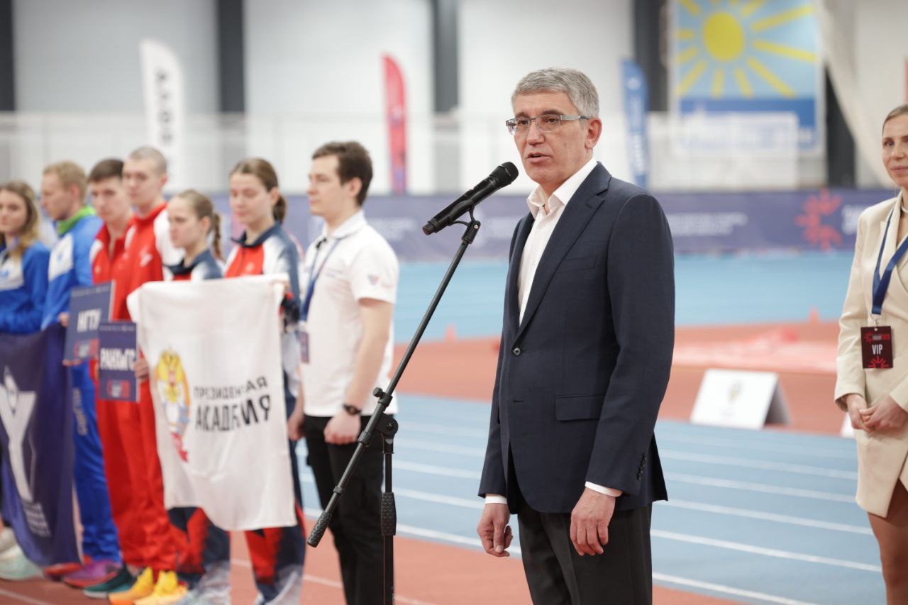 Сегодня в спорткомплексе «Тулица» Губернатор Тульской области Дмитрий Миляев посетил церемонию открытия Всероссийского студенческого чемпионата по лёгкой атлетике.